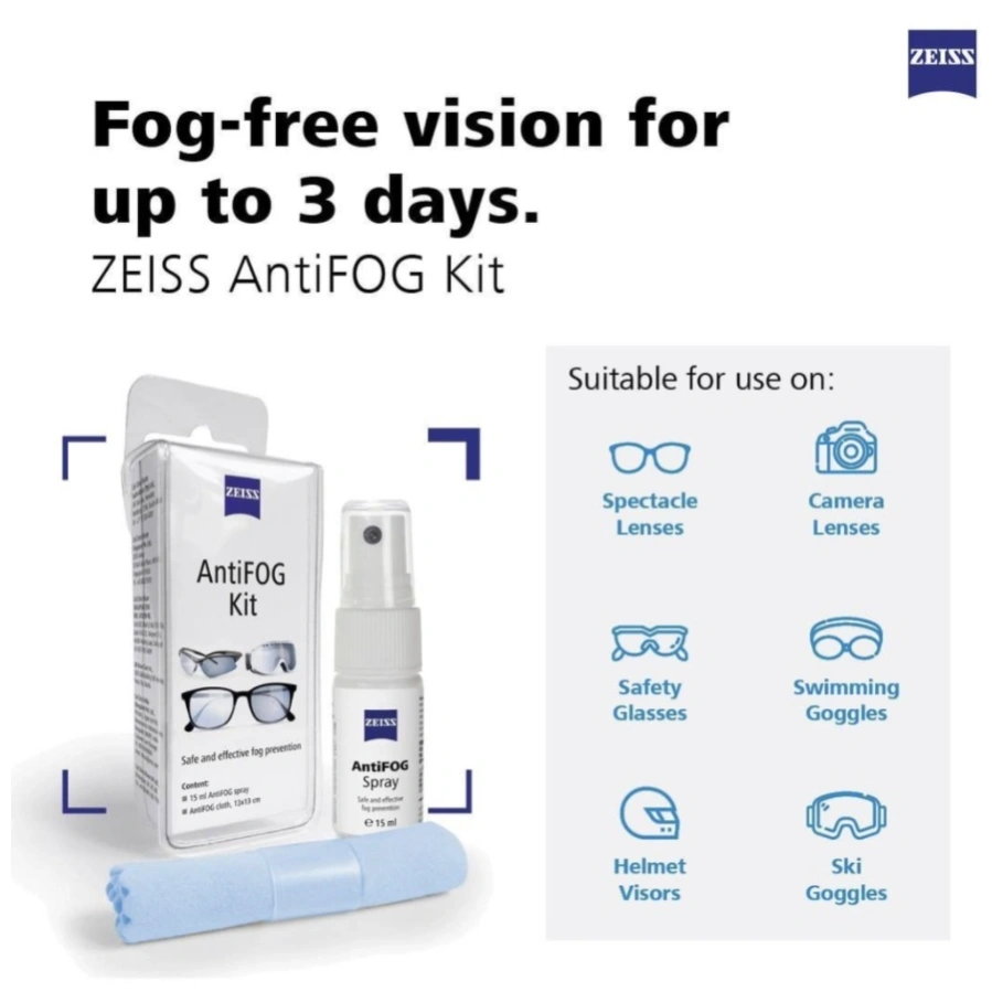 With decades of expertise in precision optics, ZEISS provides reliable lens care products trusted by opticians worldwide. The Fog Defender System offers a simple yet effective way to prevent fogging, ensuring comfortable and uninterrupted vision throughout your day.